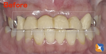6連結の前歯のブリッジ