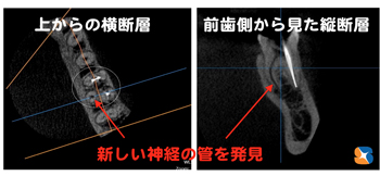 最新CTで歯を上からと前歯から輪切り診断